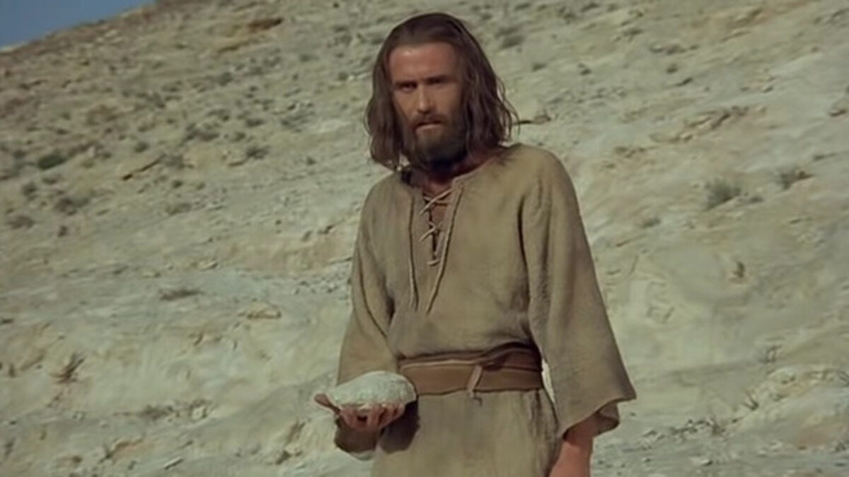 Cobaan pertama: Keinginan untuk menguasai alam. Inti cobaan ini ialah pemuasan keinginan manusia untuk bebas dari hukum-hukum alam. Ada proses alamiah dalam sepotong roti. Membuat roti dari batu hanyalah keinginan untuk lepas dari hukum alam dan menguasai alam.